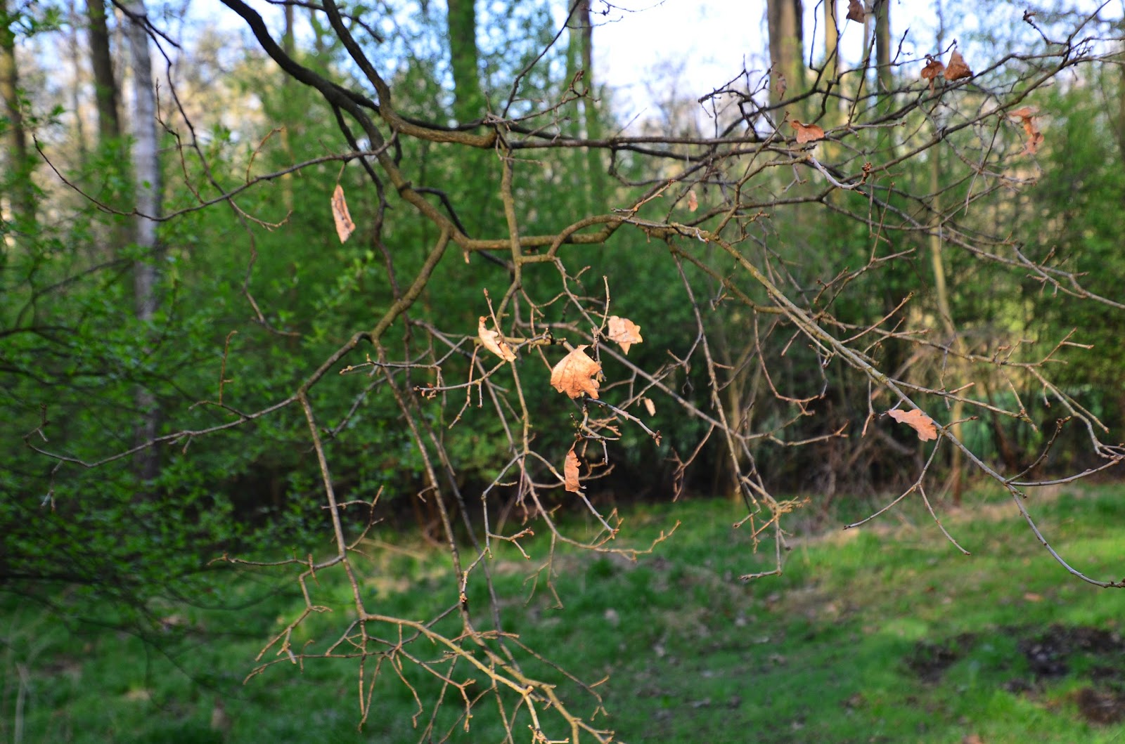 W lesie widać, że wiosna jeszcze nie przegoniła całkiem tego, co surowe w obrazie jesienno-zimowym.