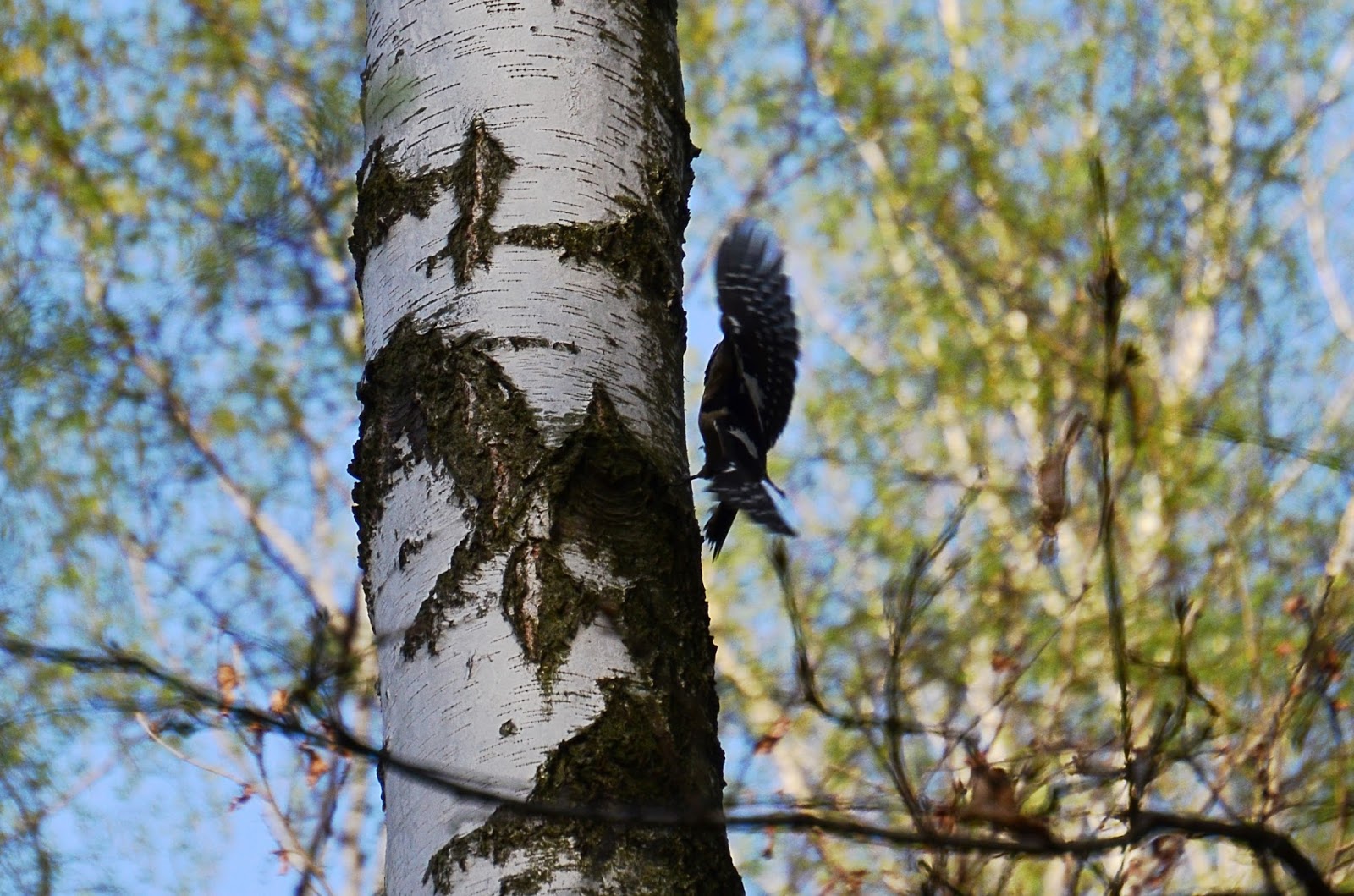 Mija już godzina mojego niedzielnego buszowania wśród natury – jestem trochę zmęczona. Zawracam i wpadam w obszar lasu, gdzie dzięcioły odbywają gody!