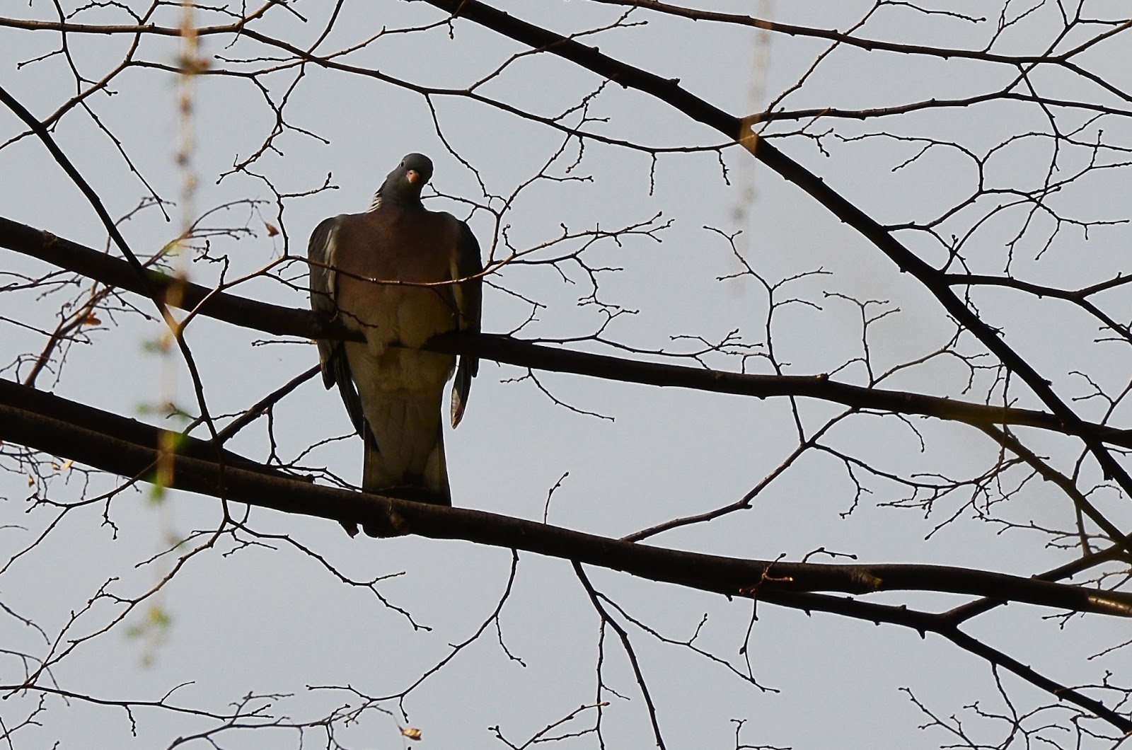 oraz przyglądającego mi się dziwnie gołębia grzywacza (Columba palumbus) – największego gołębia z gatunków występujących w Polsce – wyglądającego na gałęzi jak jakiś generał ;D