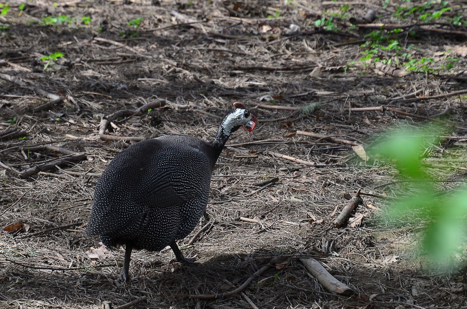 trwożliwie uciekającej perliczki – perlica zwyczajna (Numida meleagris) – ktoś tu chyba przed nocą nie zdążył wrócić do kurnika… ;)