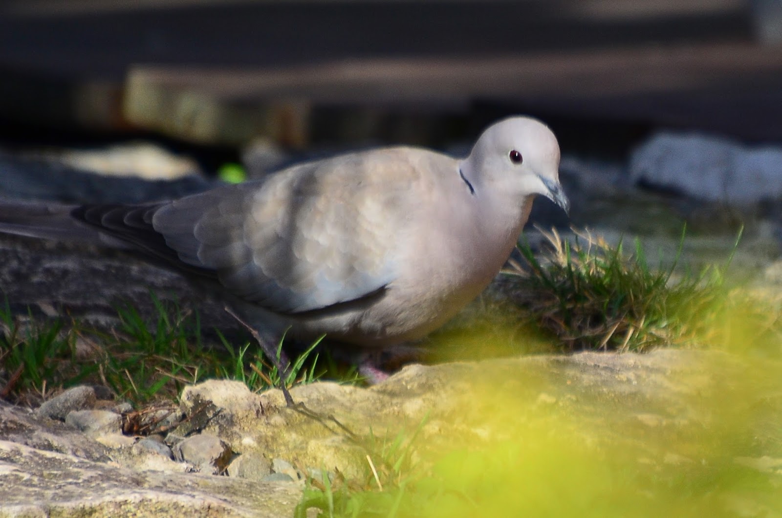 Nagle z krzaków wylatuje zaspana synogorlica inaczej zwana sierpówką zwyczajną (Streptopelia decaocto). Co się dzieje tego niedzielnego poranka? Przecież wschód słońca zaczął się o godzinie 5.40… Ptaki powinny już szaleć na całego a przypominają moje pisklęta o poranku – wszystkie, nawet te dorosłe, gdy trzeba wstawać do szkoły, czy też na uczelnię… Rozespana synagorlica jest tak zdziwiona moim widokiem, że zamiast wzlecieć na dachy przysiada na ziemi i ciekawie mi się przygląda.
