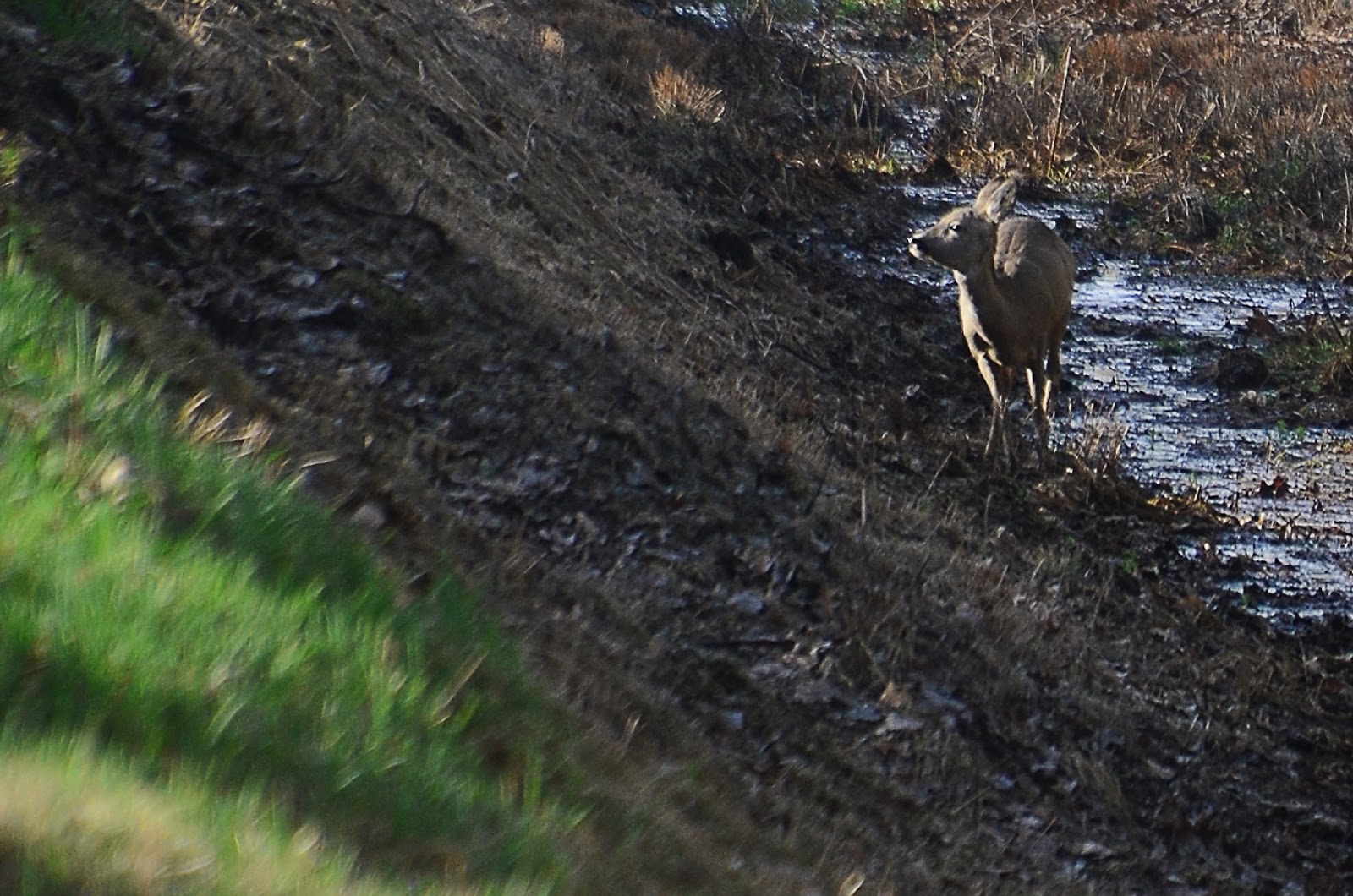 Wychodzę z lasu. Odgłosy ptaków dochodzą do mnie coraz ciszej. Trochę mi tęskno, ale przecież wrócę… Przechodzę przez rów a z rowu zerka na mie skubiąca trawę sarenka – jeszcze w zimowej szacie.